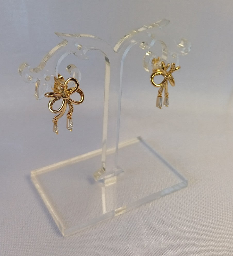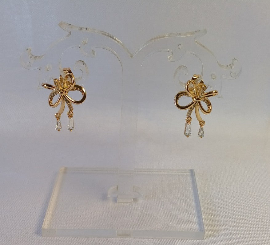 Pair these AD Bow Stud earrings with a soft pastel blouse or a chic A-line dress to highlight their feminine sparkle and graceful drop detail.