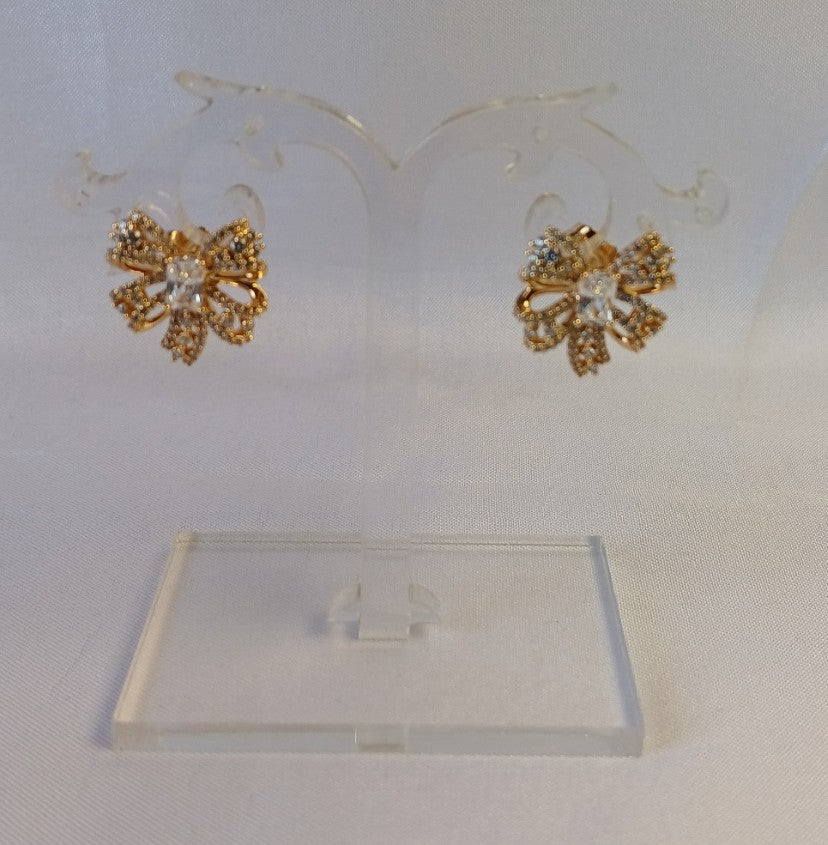 These AD Bow Studs showcase a delicate golden bow design fully embellished with sparkling American diamonds. Their elegant shimmer complements any outfit, making them perfect for adding a touch of sparkle to your everyday look or special occasions. Lightweight and comfortable, these studs enhance your style with subtle sophistication.