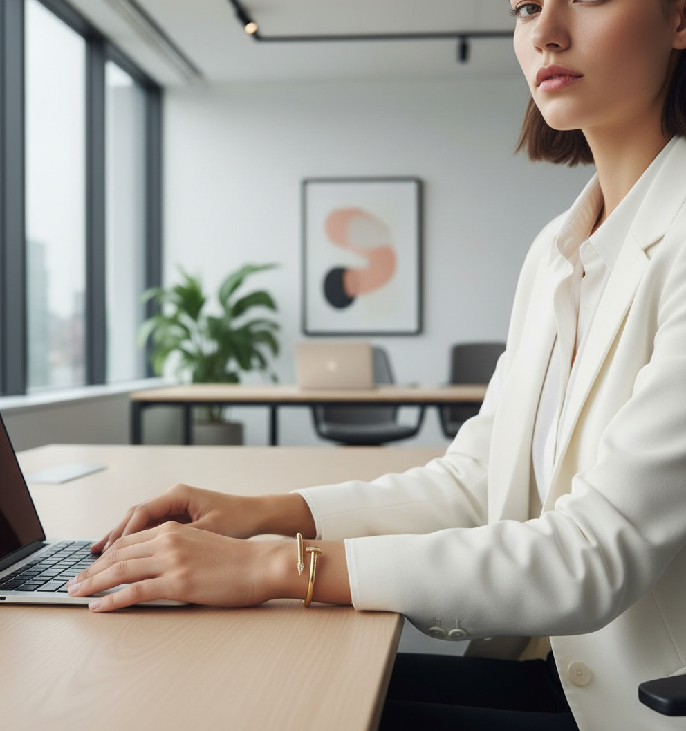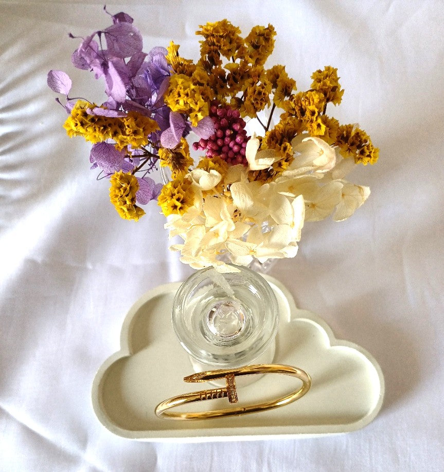 The AD Nail Bangle adds a touch of elegance to any outfit with its unique golden nail design. This bangle is both trendy and sophisticated, making it a versatile accessory for any occasion. Elevate your style with the AD Nail Bangle.