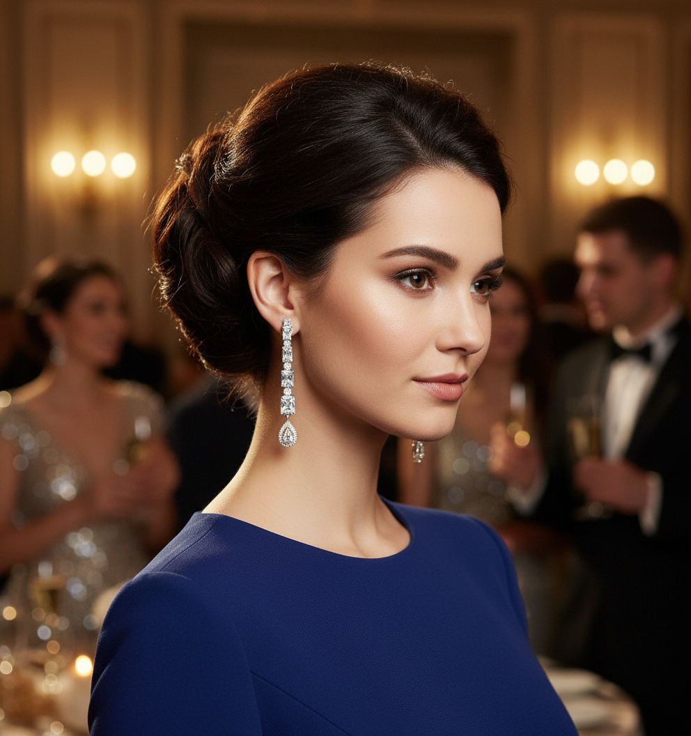 Pair the Amelia AD Danglers with a sleek black dress or a satin blouse to let the sparkling American diamonds take the spotlight—effortless glam in seconds.