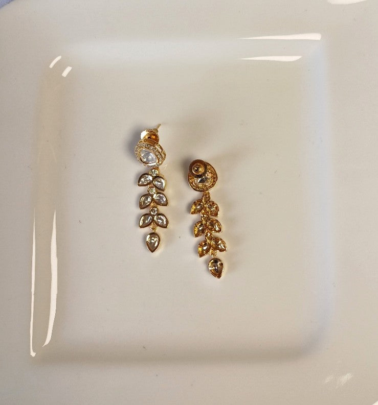 Upgrade your jewelry collection with our Avni Kundan Dangler. The golden design is embellished with tayani kundan and 18k gold plating, adding a touch of elegance to any outfit. Elevate your style and make a statement with this must-have piece.