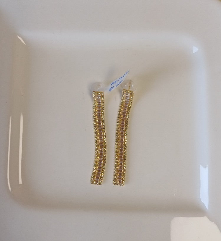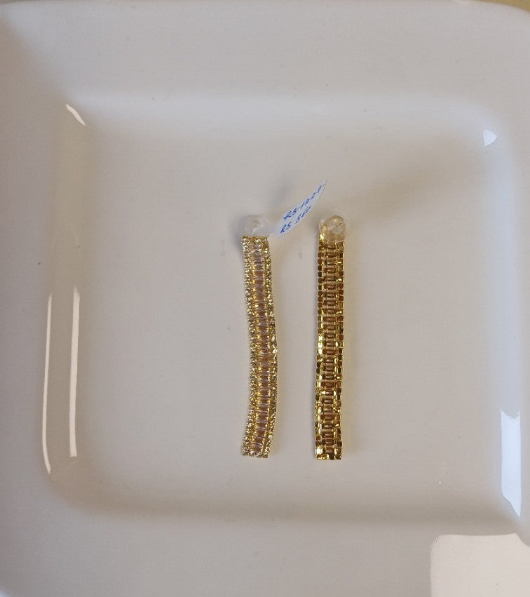Ayra Dangler is a stunning piece that combines timeless sophistication with modern sparkle. Featuring a graceful 7 cm length adorned with rectangular American diamonds running through the center, complemented by delicate small American diamonds along the sides, this dangler catches light beautifully from every angle. Perfect for adding a touch of glamour to any occasion, whether you're dressing up for an event or enhancing your daily style.
