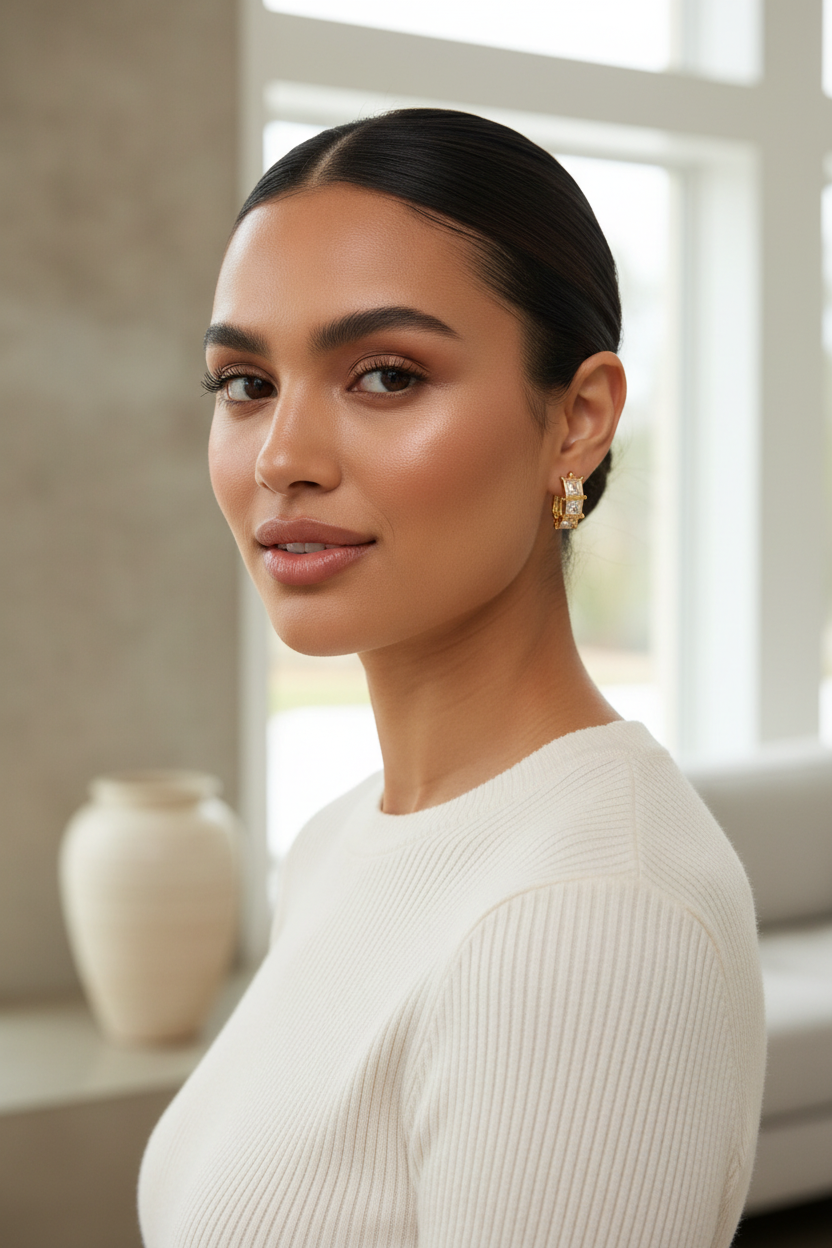 Let your Bling Hoops be the star ✨ Pair them with a sleek ponytail or soft waves and a solid-color outfit—think black, white, or pastels—so the sparkling American diamonds catch the light effortlessly. Perfect for elevating everyday looks or adding glam to evening wear.