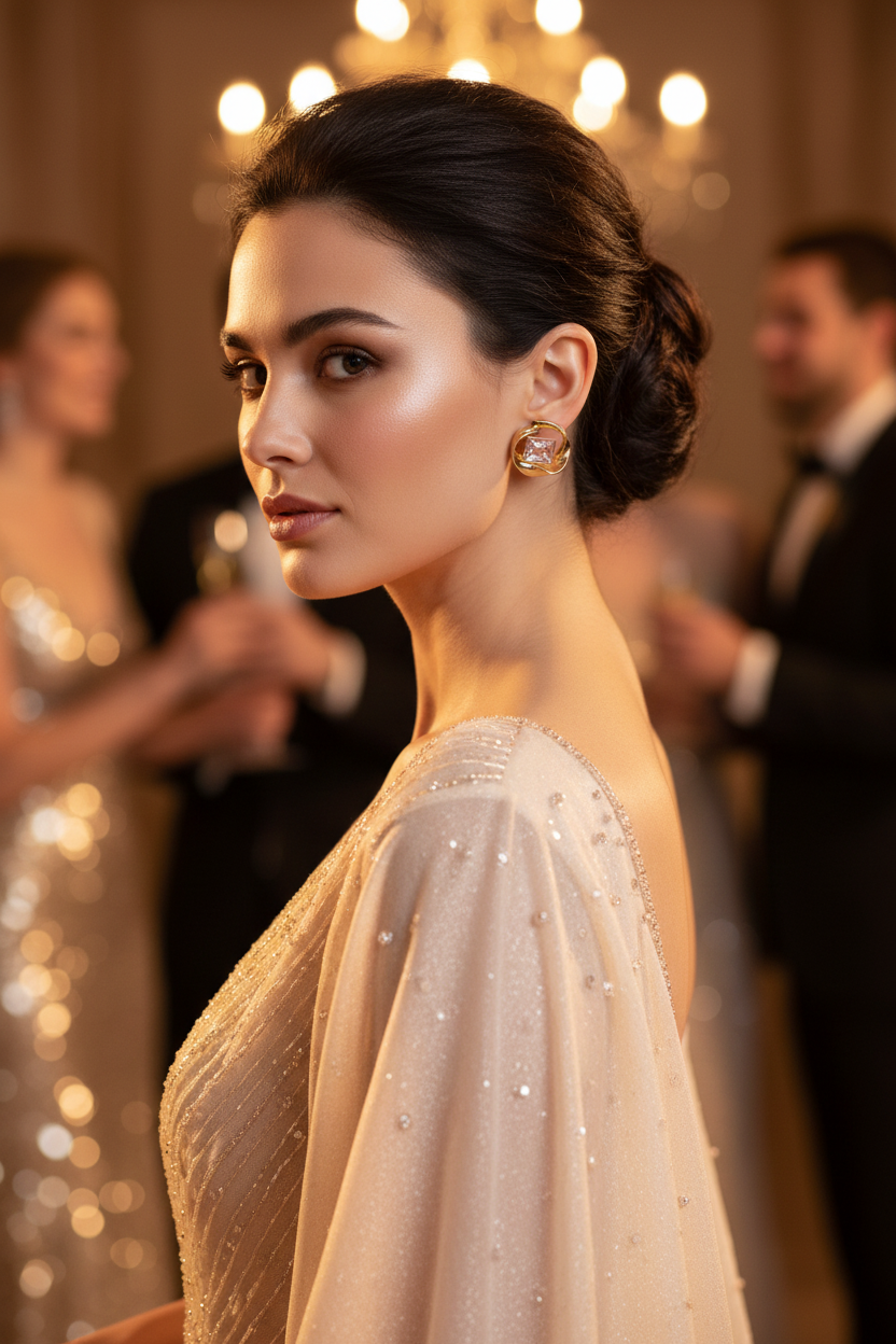 Let the Bling Stud shine by pairing it with clean silhouettes—think crisp white shirts, satin tops, or elegant kurtas. Keep your neckline simple and hair pulled back to highlight the sparkle. Perfect for day-to-night looks when you want effortless glamour without going over the top ✨