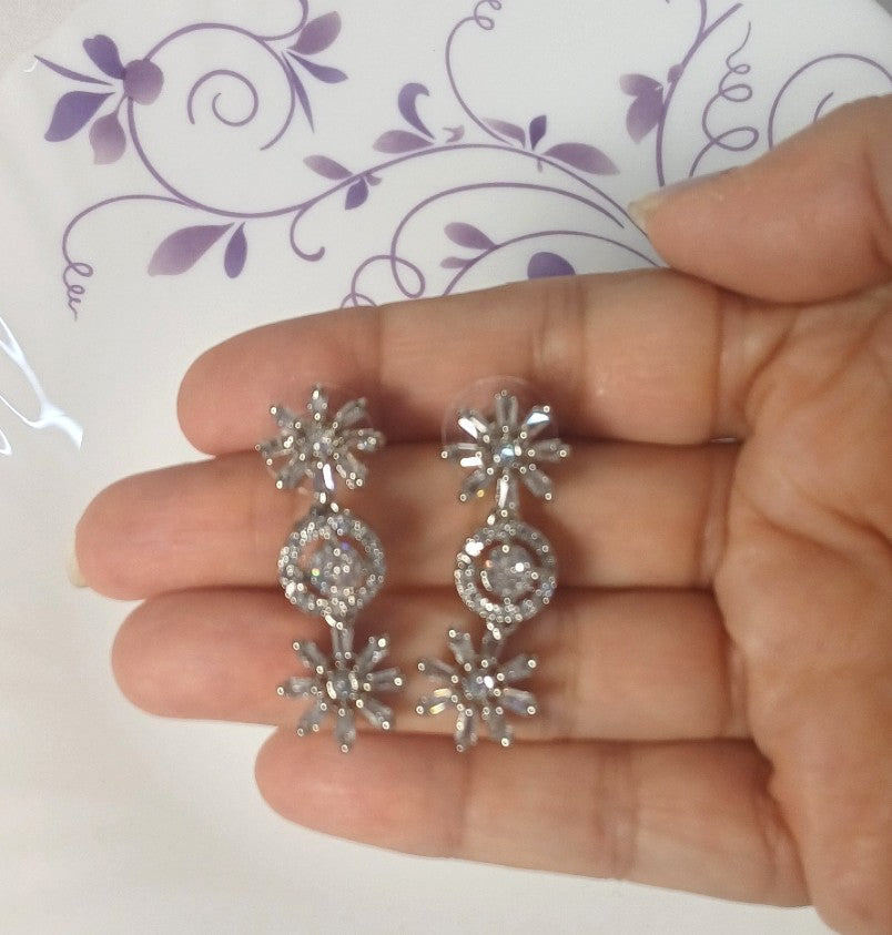 Pair the Bloom AD Dangler with a flowy pastel dress or an elegant silver-toned saree for a soft, feminine look that highlights its sparkling charm.