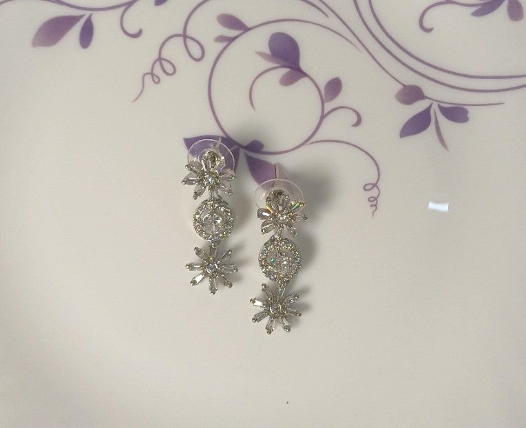 The Bloom AD Dangler is a delicate silver earring adorned with sparkling American diamonds. Its elegant design adds a subtle yet refined touch to any outfit, making it a versatile accessory for both daily wear and special occasions. Comfortable to wear and crafted with care, this dangler enhances your look with effortless charm.