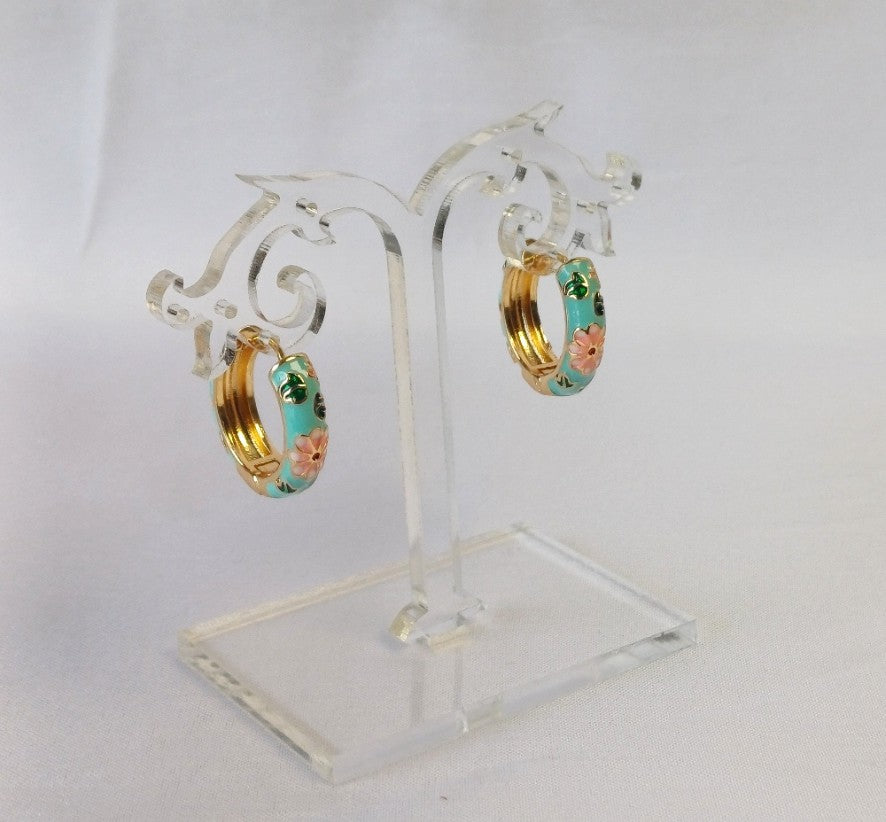These Blue Hoops feature delicate meenakari work embellished with charming pink flowers, adding a touch of vibrant elegance to your look. Lightweight and eye-catching, they are perfect for brightening any outfit while offering comfortable wear throughout the day.