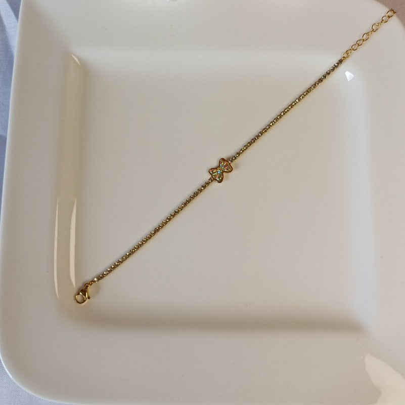This elegant Bow Tennis Bracelet features a delicate small bow at its center, adorned with smooth enamel detailing. Its classic tennis bracelet design offers timeless style, while the bow adds a charming, unique touch. Perfect for everyday wear or special occasions, this bracelet combines subtle sophistication with a hint of playful elegance.