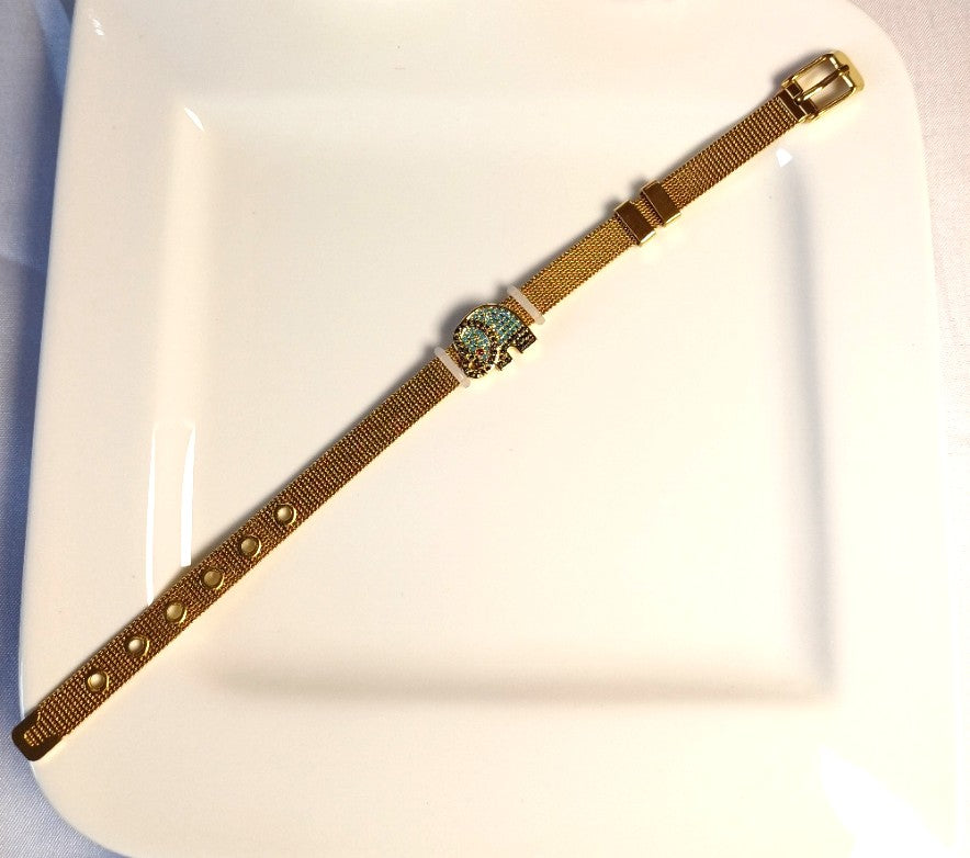 This Elephant Watch Bracelet features a stunning American diamond-embellished elephant centerpiece paired with a sleek golden watch strap, combining elegance and charm in one accessory. Perfect for adding a touch of sophistication to your everyday look.