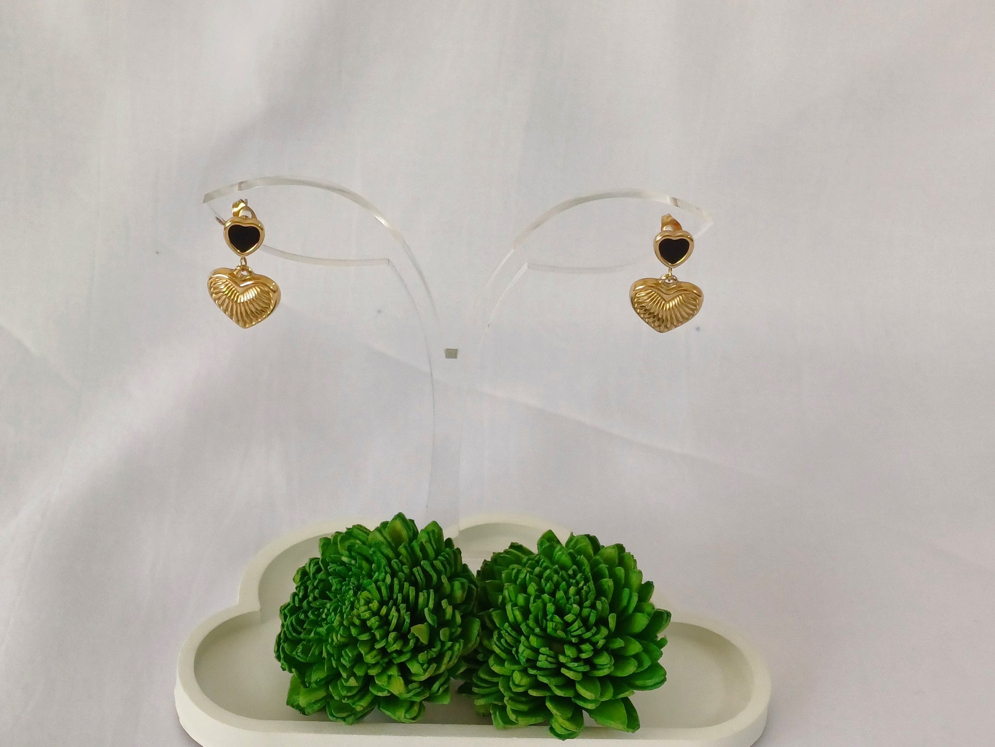 Pair the Golden Black Heart Drop earrings with a simple black dress or a sleek blouse for a chic, bold look. Let the earrings be the focal point of your outfit, and keep other accessories minimal for a balanced, elegant style.