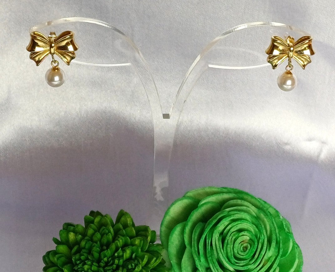 These beautiful golden bow pearl studs are ideal for work wear and daily wear.