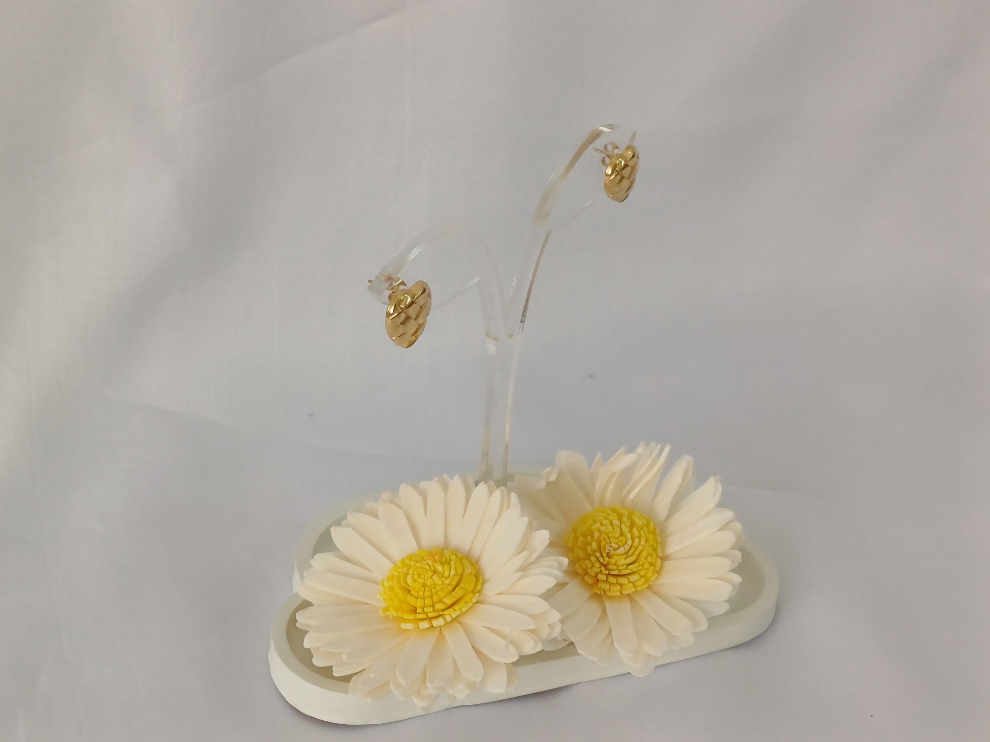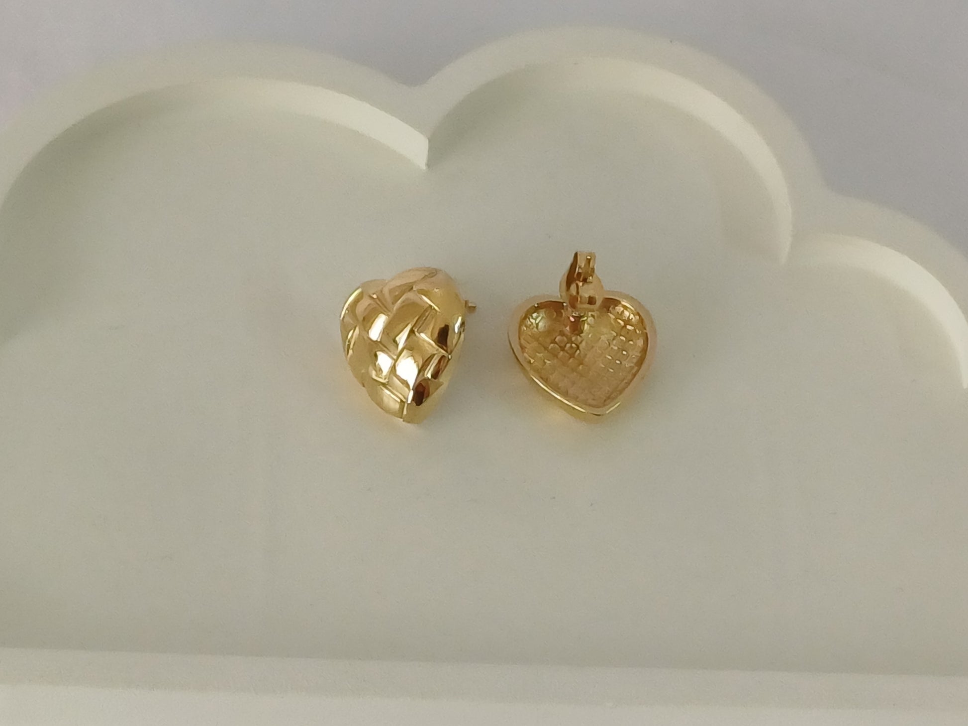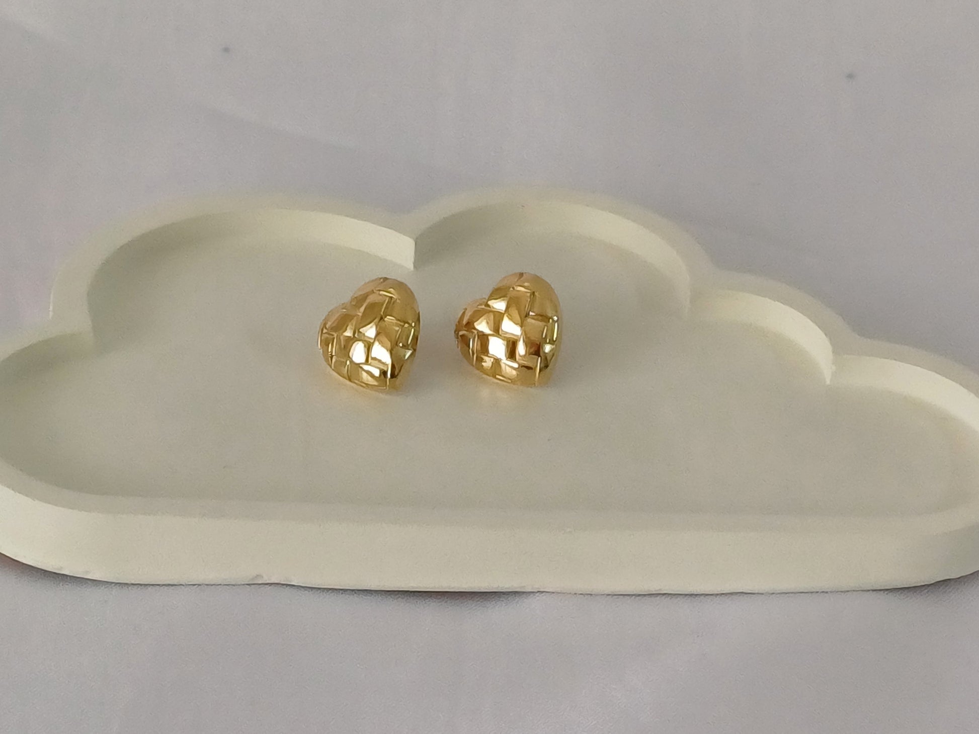 Golden Heart Stud "Anna" features a delicate heart-shaped design, its subtle pattern adds a touch of elegance, perfect for everyday wear.