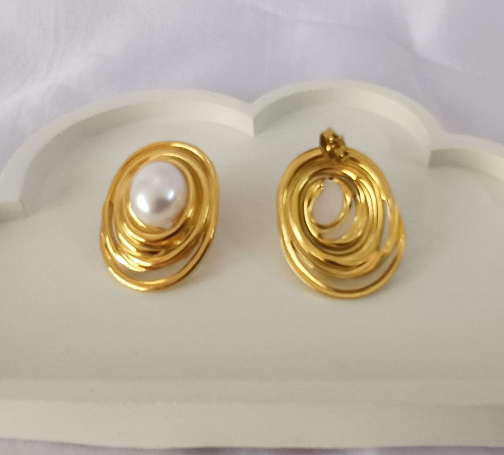 Golden Oval Pearl Stud Norah