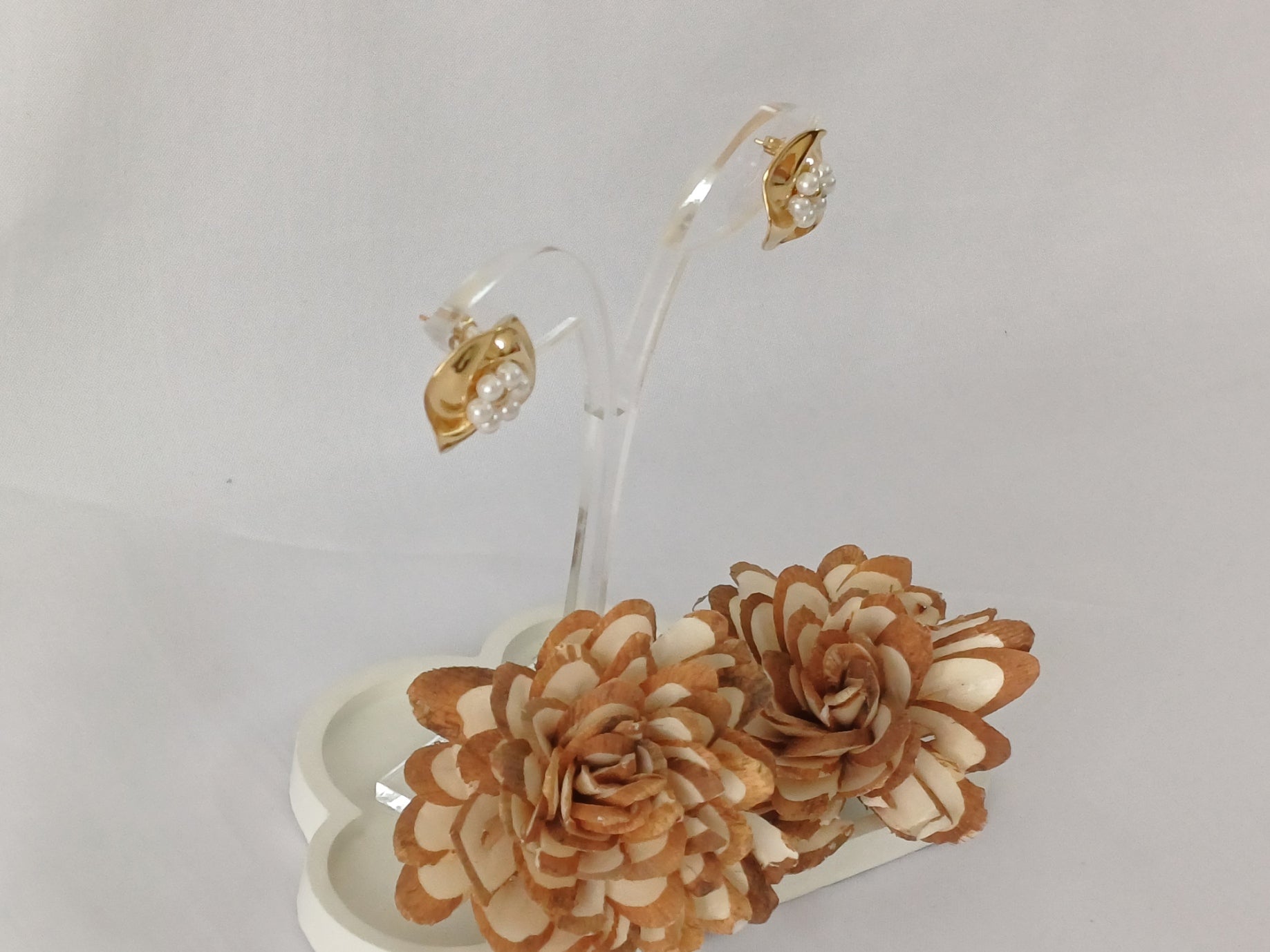Pair the Golden Pearl Flower Stud Eliza earrings with a simple, monochrome outfit to let the intricate design stand out. They complement both casual and formal looks, adding a touch of elegance to a classic blouse or a chic evening dress.