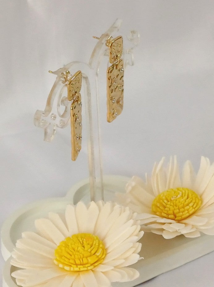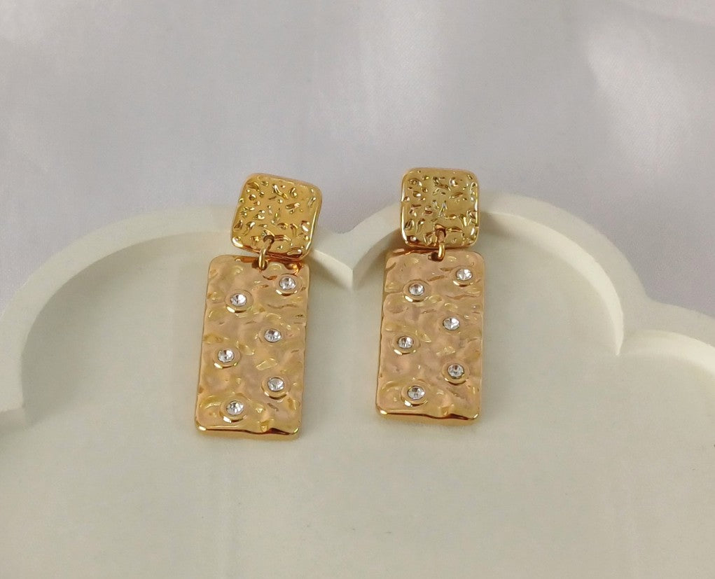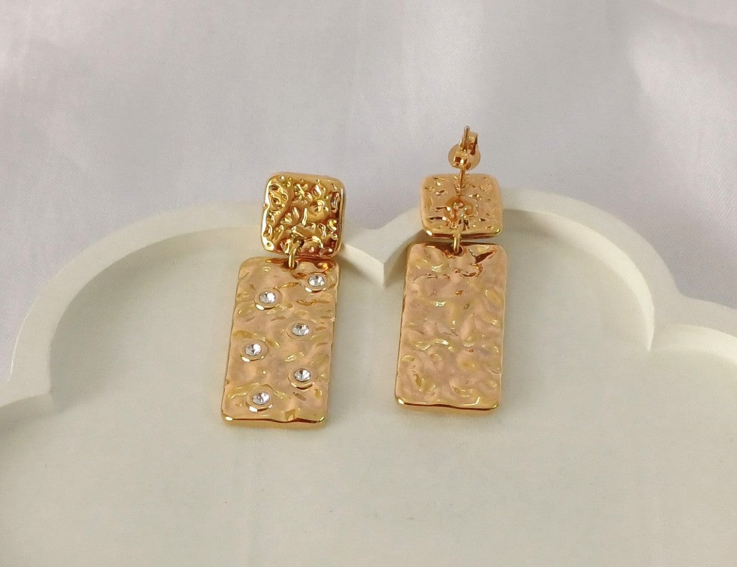 Elevate your style with our Golden Rectangle Drop Earrings! Sleek, minimalist, and American diamond embellished; these trendy earrings are perfect for day-to-night glam. Stay stunning and on-trend with quality you can trust.