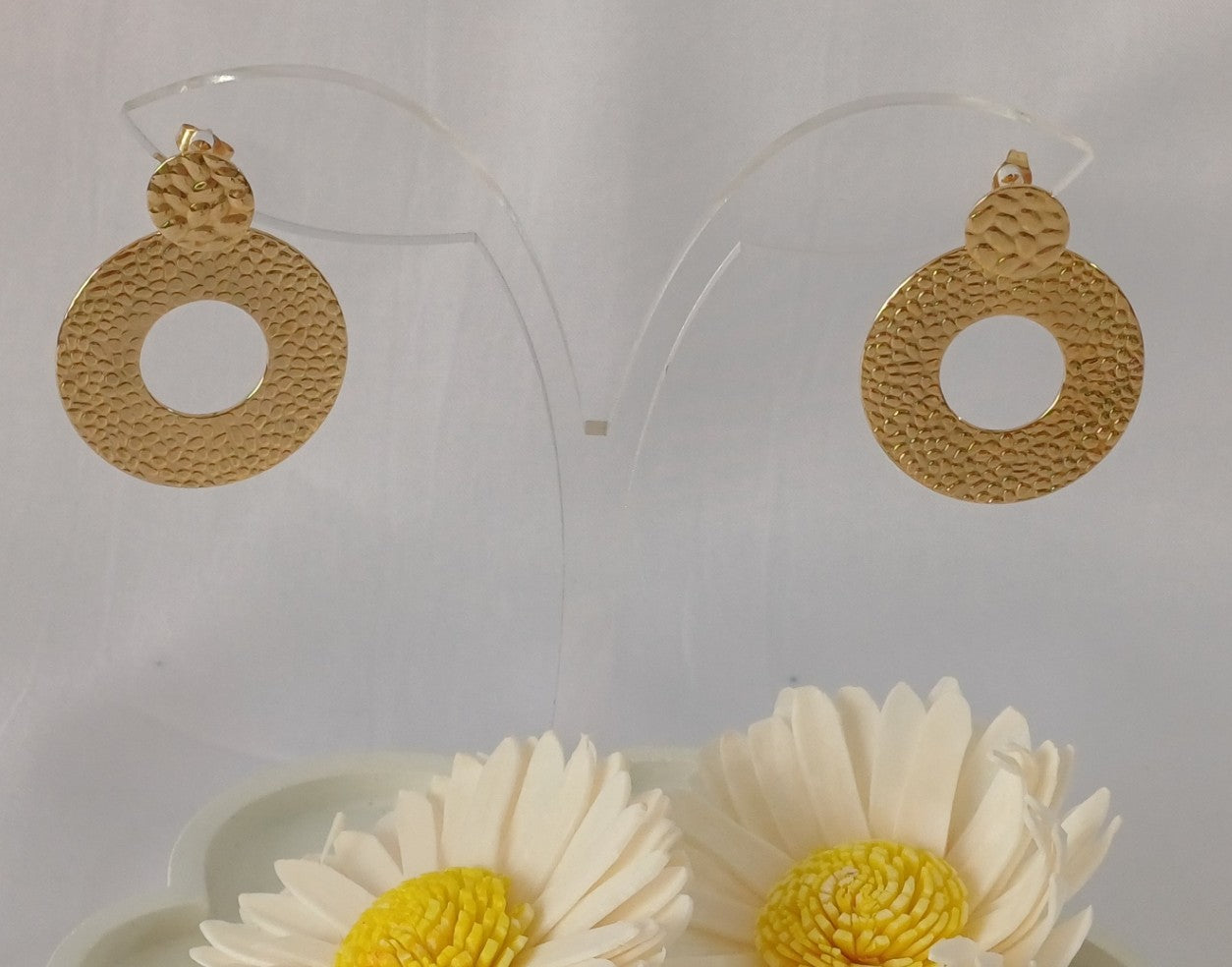 Avoid Chemicals: Keep your earrings away from harsh chemicals like perfumes, hairspray, lotion, or cleaning products, as these can affect the gold polish.
