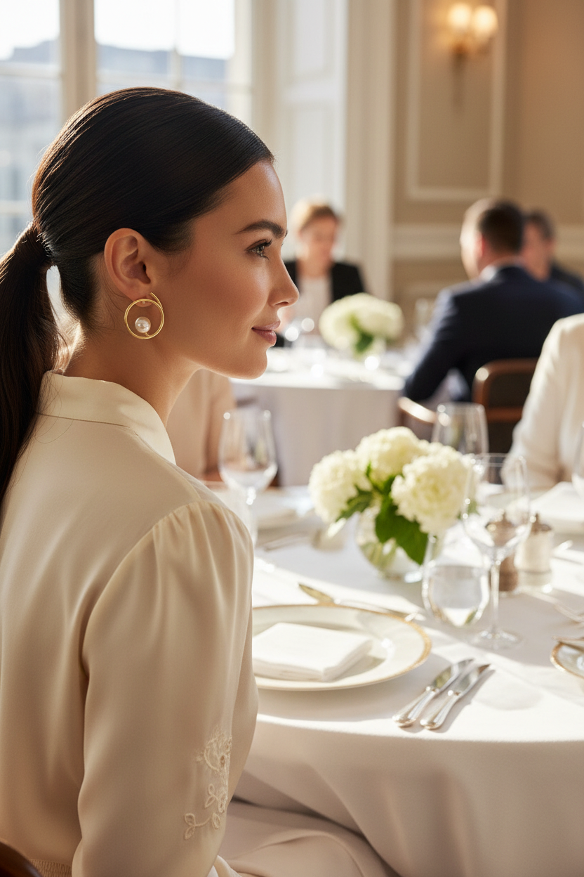 Pair the Vanessa Earrings with a chic blazer or a satin blouse for a polished, sophisticated look, or dress them down with a cozy knit sweater to add a touch of elegance to your casual outfit.