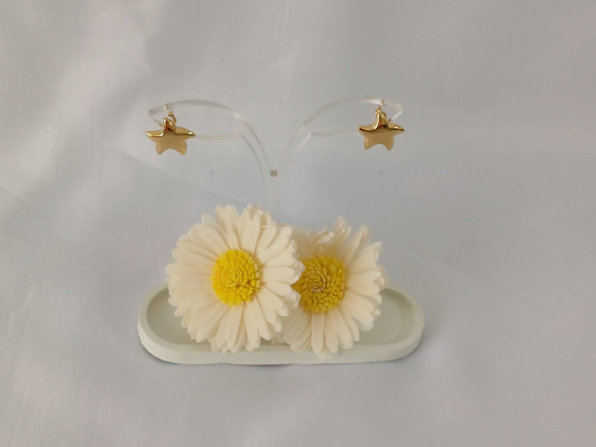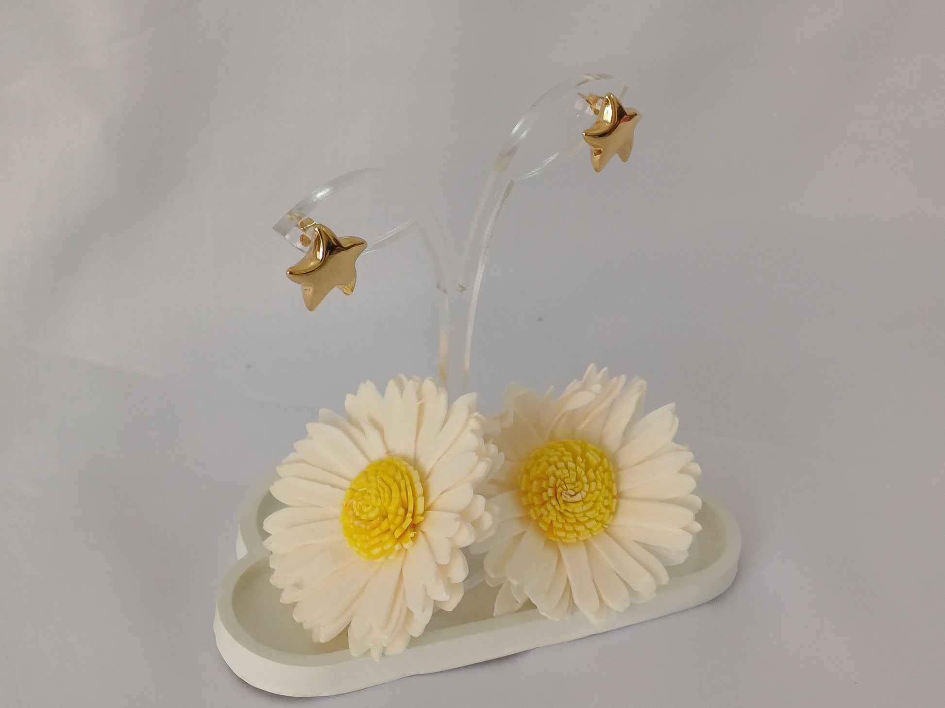 Pair your Golden Star Studs with a sleek ponytail or tucked-back hair to let their sparkle shine, and add a dainty gold necklace for a chic, coordinated look.