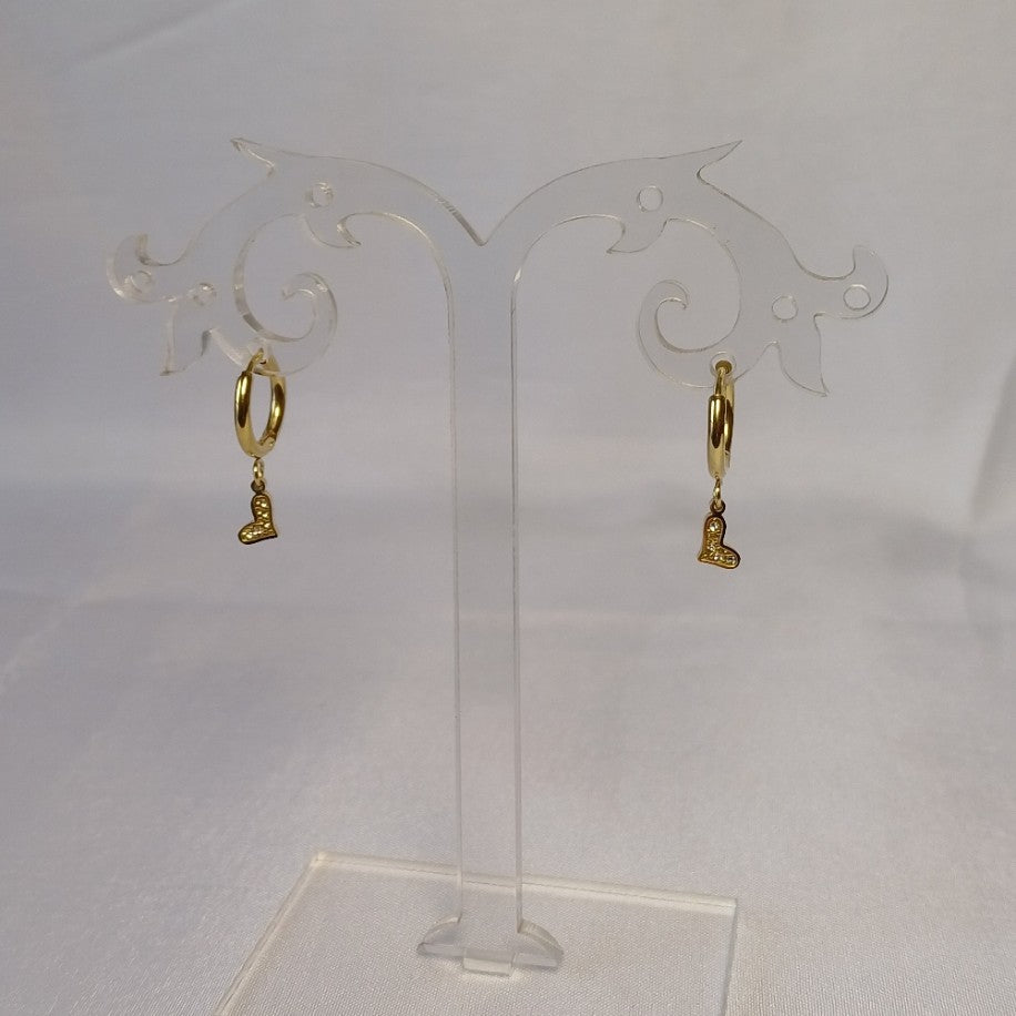 This Heart Set features three elegant pairs of golden earrings designed to complement any outfit. It includes a classic small hoop, a small hoop with a charming heart drop, and a small hoop adorned with a delicate heart drop and additional detailing. Perfect for adding a touch of warmth and style to your everyday look, this set offers versatile options to suit your mood and occasion.