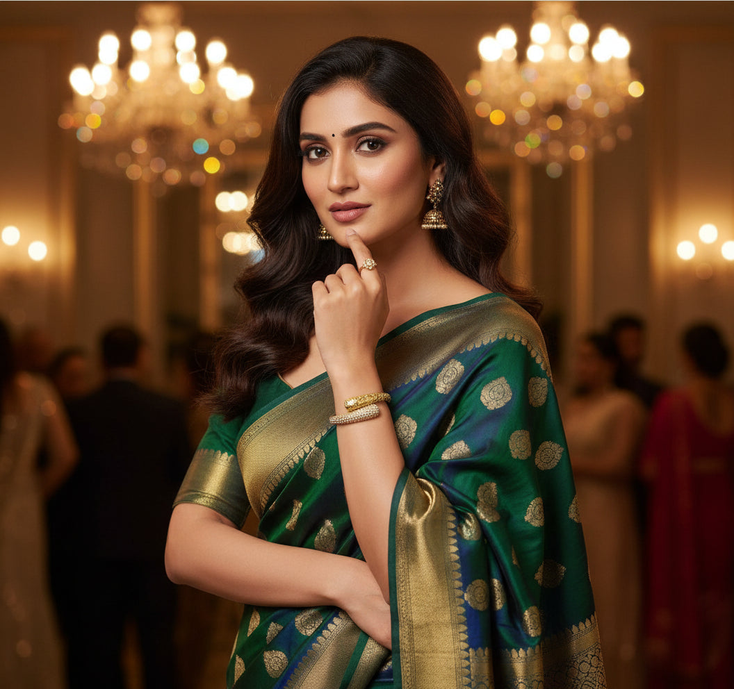 Pair the Ivy Bangle with a flowy dress or chic saree to highlight its elegant ivy motif—perfect for adding sparkle and symbolism to your look. ✨🌿