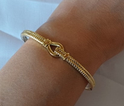 The Joanna Bangle features a stunning rope design, blending elegance with a touch of texture. Perfect for stacking or wearing solo for a sophisticated statement!