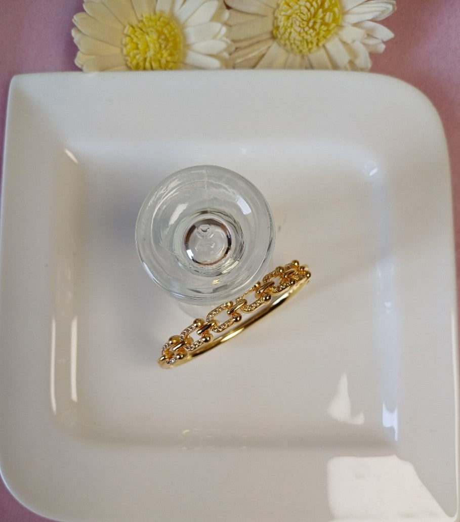 The Joanna Bangle is a stunning contemporary piece that combines timeless elegance with modern design. Crafted in gleaming gold, this bangle features an intricate link chain design adorned with sparkling American diamonds that catch the light beautifully. Perfect for adding a touch of sophistication to any occasion, whether you're dressing up for an event or elevating your everyday style. The delicate interplay of the chain pattern and diamond accents creates a refined, eye-catching look that complements both traditional and contemporary outfits.