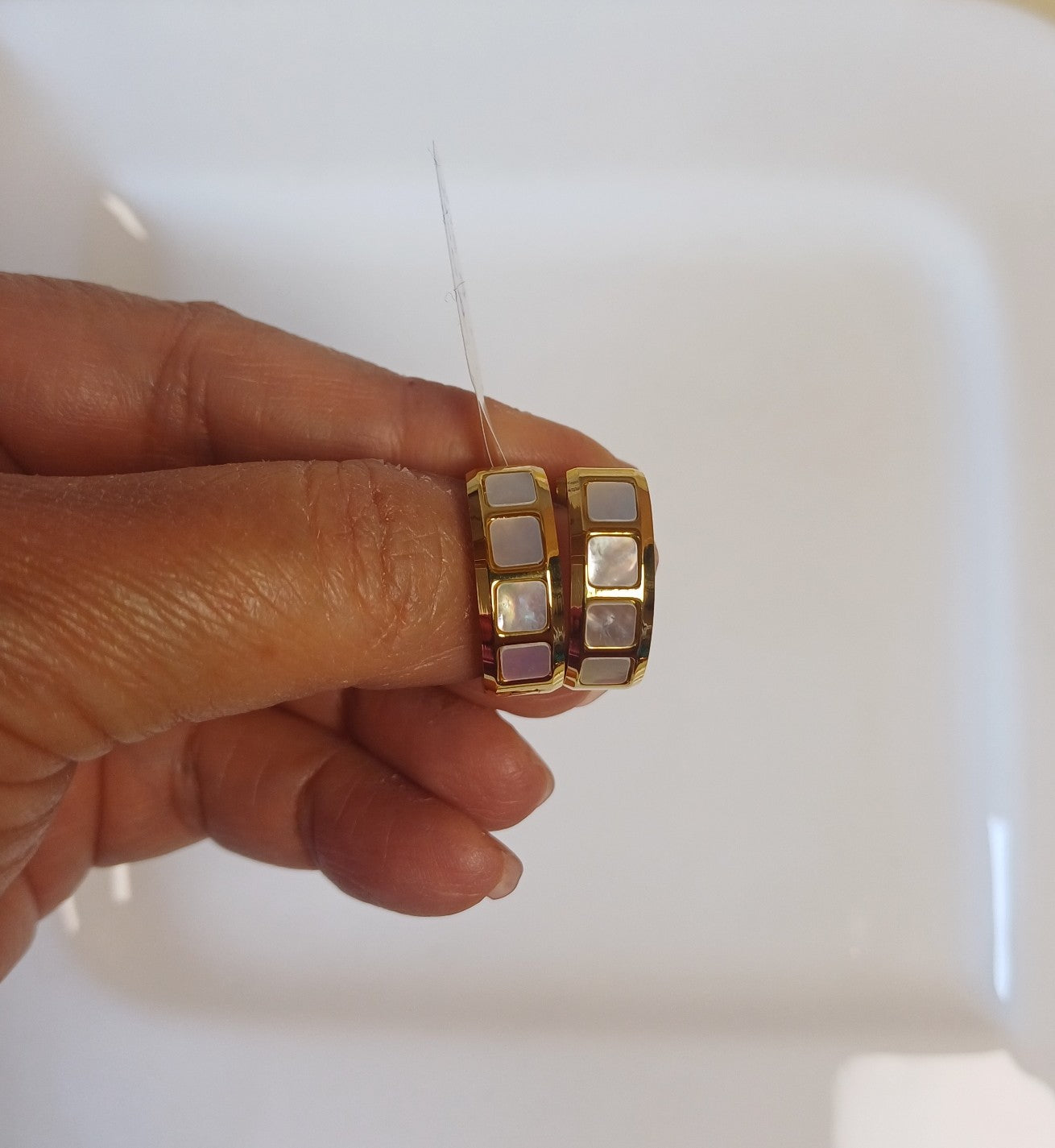 Elevate your everyday elegance with this stunning MOP Hoop. Crafted in lustrous gold, it features beautiful mother of pearl inlays that catch the light with every movement. Whether you're dressing up for a special occasion or adding polish to your daily style, this piece brings understated luxury to your jewelry collection.
