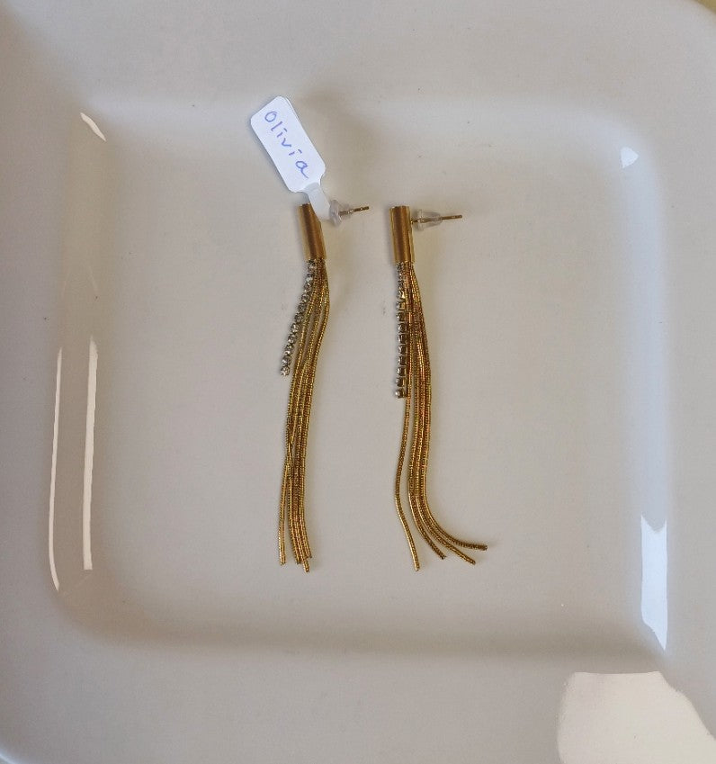 Elevate your everyday elegance with Olivia Danglers, featuring delicate golden chains paired with shimmering American diamond string that catch the light beautifully. These graceful danglers add a touch of sophistication to any occasion, whether you're dressing up for a special event or enhancing your daily style. The perfect blend of timeless design and sparkling allure.