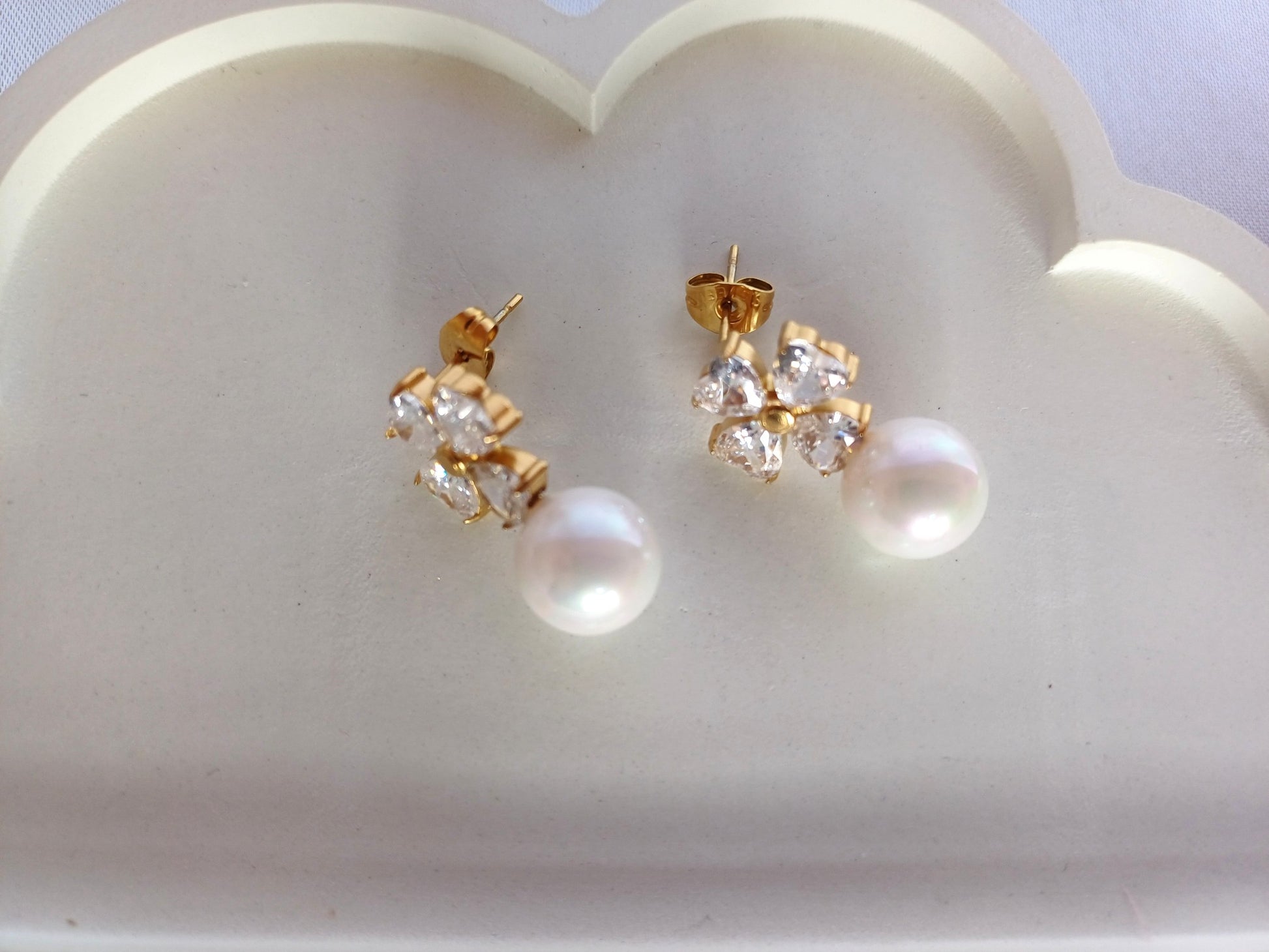 These beautiful American diamond pearl studs are ideal to style with work wear and casual wear.