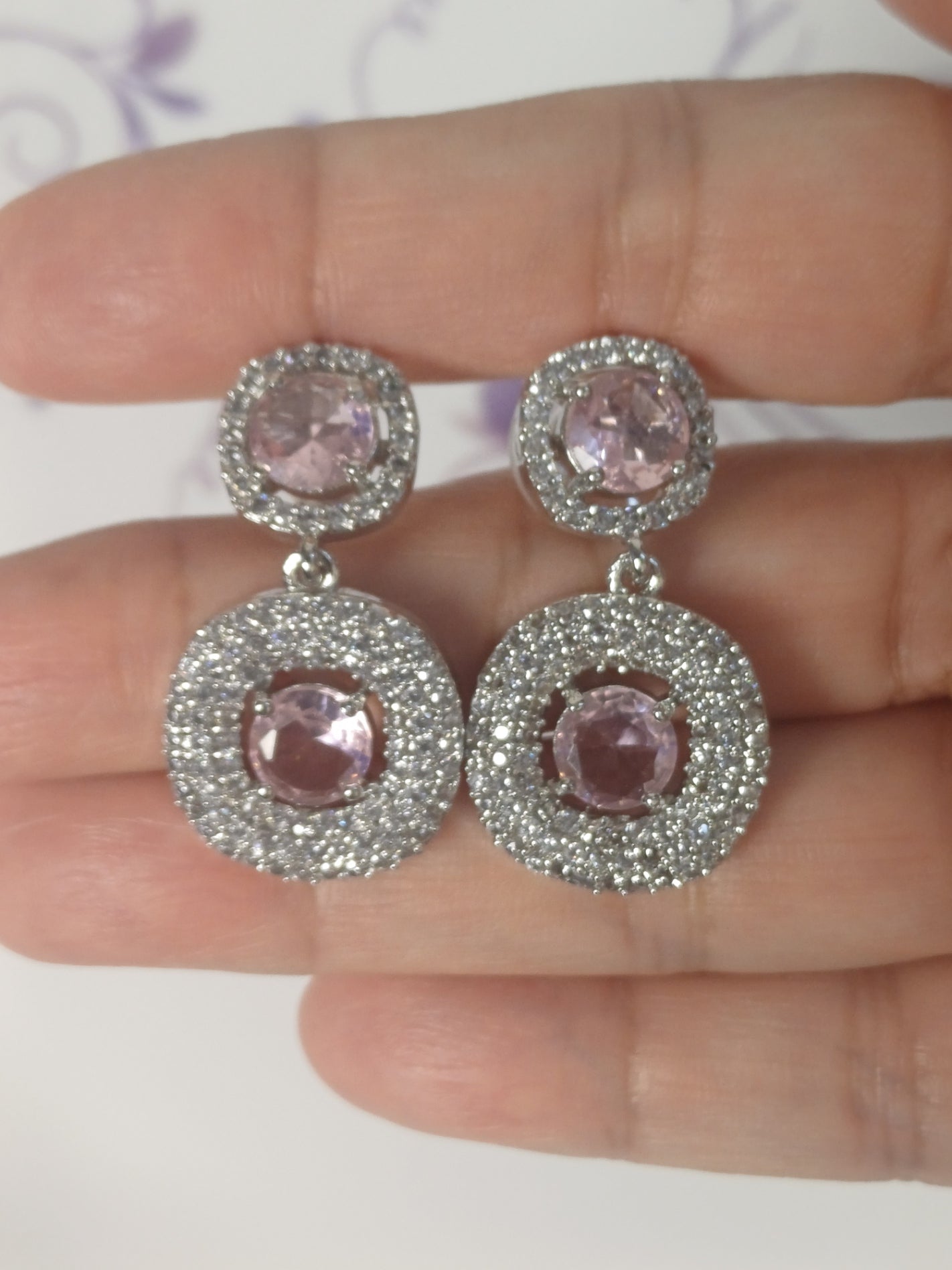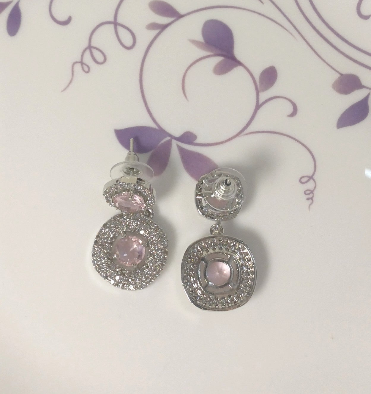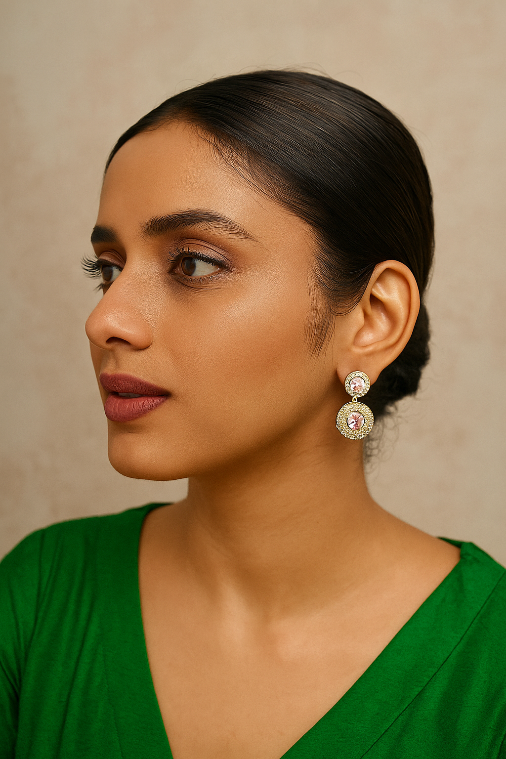 Pair the Pink AD Drop earrings with a soft pastel dress or an elegant white blouse to let the pink sparkle stand out beautifully—perfect for brunches or evening events.