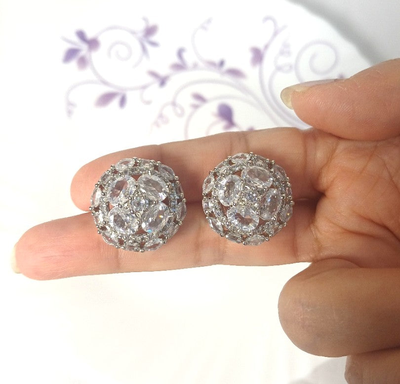 The Ruhi AD Stud features a classic round silver design, enhanced with sparkling American diamond embellishments. Its elegant simplicity makes it perfect for everyday wear or special occasions, adding a subtle touch of shine that complements any outfit. Comfortable and durable, these studs offer lasting beauty and effortless style.