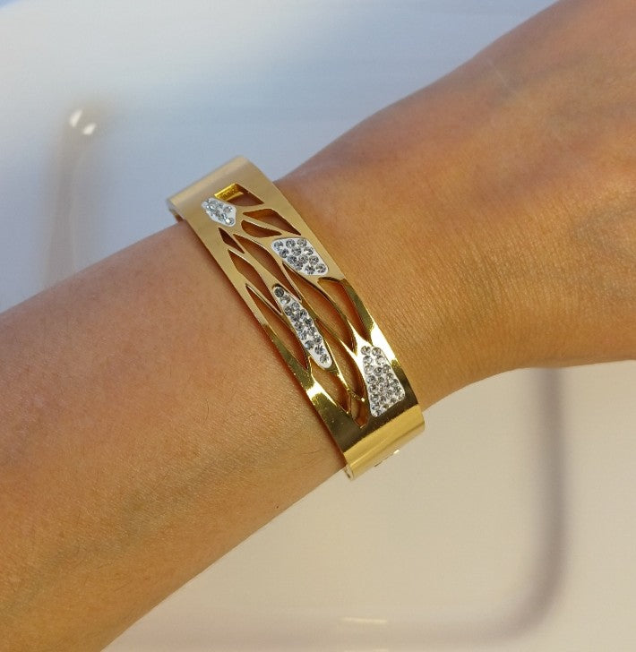 Pair the Sage Bangle with a sleek evening dress or tailored outfit to add a touch of timeless sparkle and modern elegance.