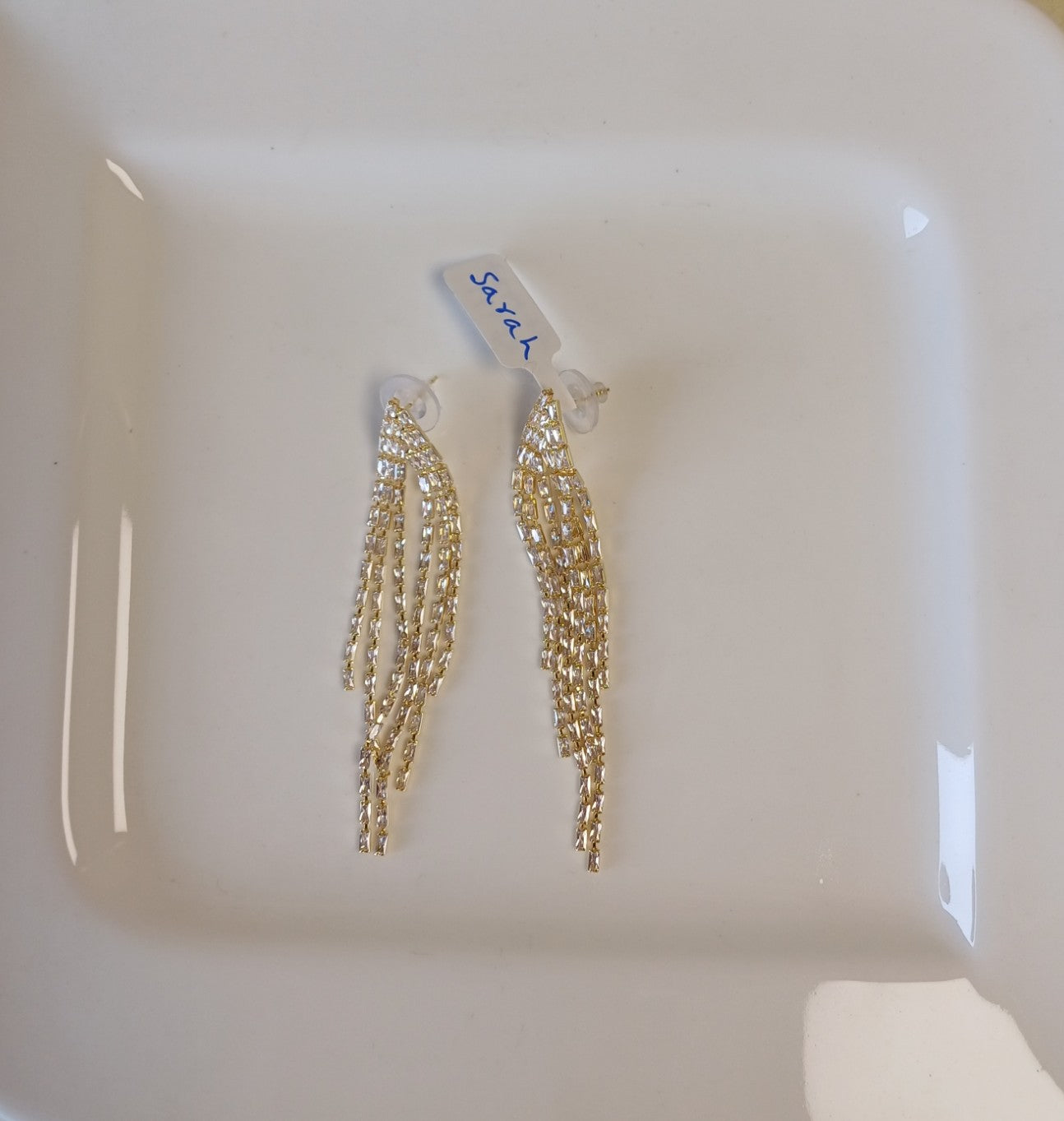 Elevate your everyday elegance with Sarah Danglers, featuring six strands of sparkling American diamonds that catch the light beautifully. These versatile danglers blend timeless sophistication with modern glamour, making them perfect for both casual outings and special occasions.