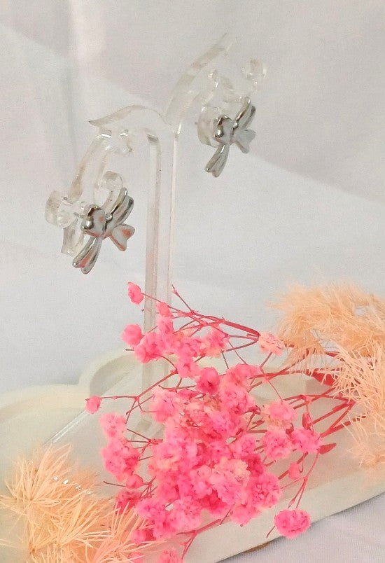 For a stylish, modern look, wear these silver bow studs with a monochromatic outfit in soft pastels or neutrals. The delicate bows will add a playful yet sophisticated touch, elevating a minimalist dress or a cozy sweater and skirt combo.