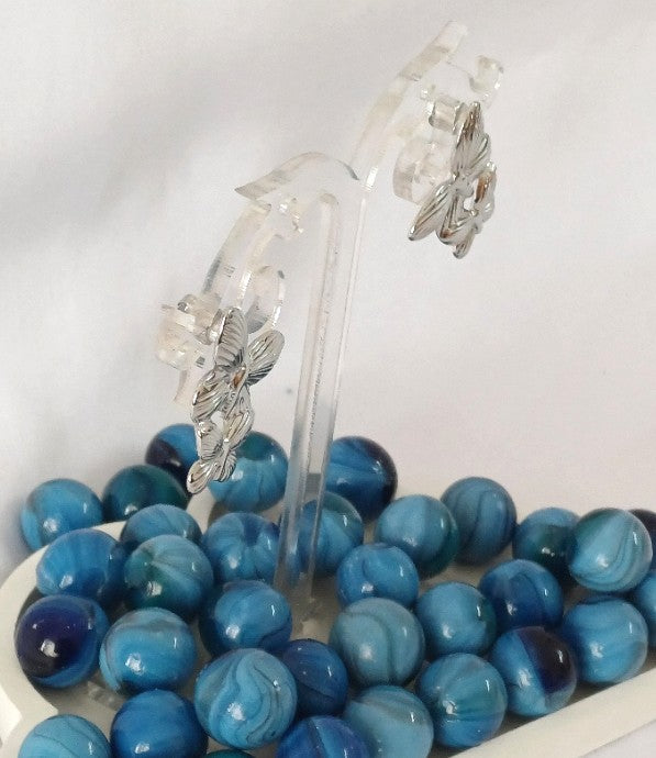 These silver butterfly studs feature an intricate butterfly design, with a pattern that adds a touch of elegance and charm. They make a beautiful statement piece while remaining subtle enough for everyday wear. Perfect for those who love nature-inspired jewelry with a unique, delicate flair.