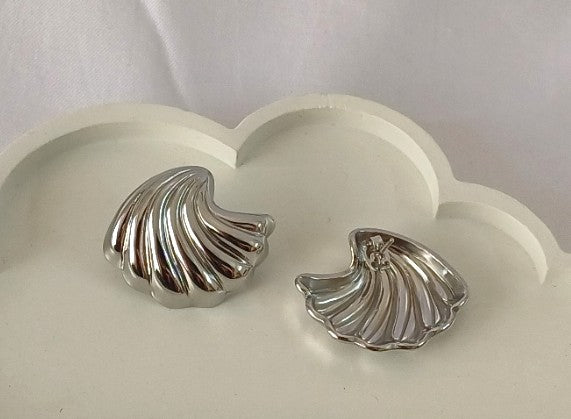 Elegant silver shell stud earrings, crafted with anti-tarnish technology for lasting shine. Perfect for a chic, ocean-inspired look.