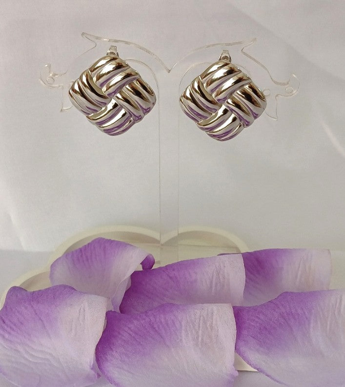 Pair these silver wave square studs with a sleek ponytail or tucked-back hair to let their unique design shine.