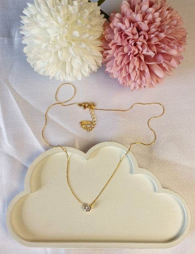 This Solitaire Necklace features a delicate gold chain paired with a stunning solitaire pendant, offering a timeless and elegant look. Its simple yet sophisticated design makes it perfect for everyday wear or special occasions, adding a touch of grace to any outfit. A beautiful piece to cherish and gift with confidence.