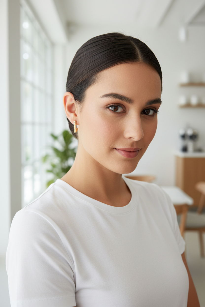 Square C Hoops add instant polish—pair them with a sleek bun or straight hair to highlight their geometric shine. They look stunning with monochrome outfits, tailored blazers, or elegant sarees for a modern-glam finish. ✨