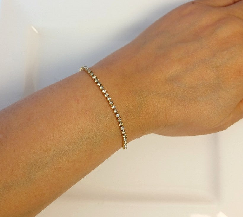 Pair the dainty Tennis Bracelet 2 with a sleek satin blouse or a little black dress for a refined, minimal look that lets its sparkle shine. ✨
