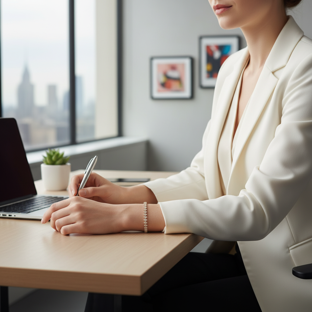 Pair your dainty Tennis Bracelet 3 with a sleek satin blouse or an elegant little black dress for a timeless, minimal-chic look. ✨