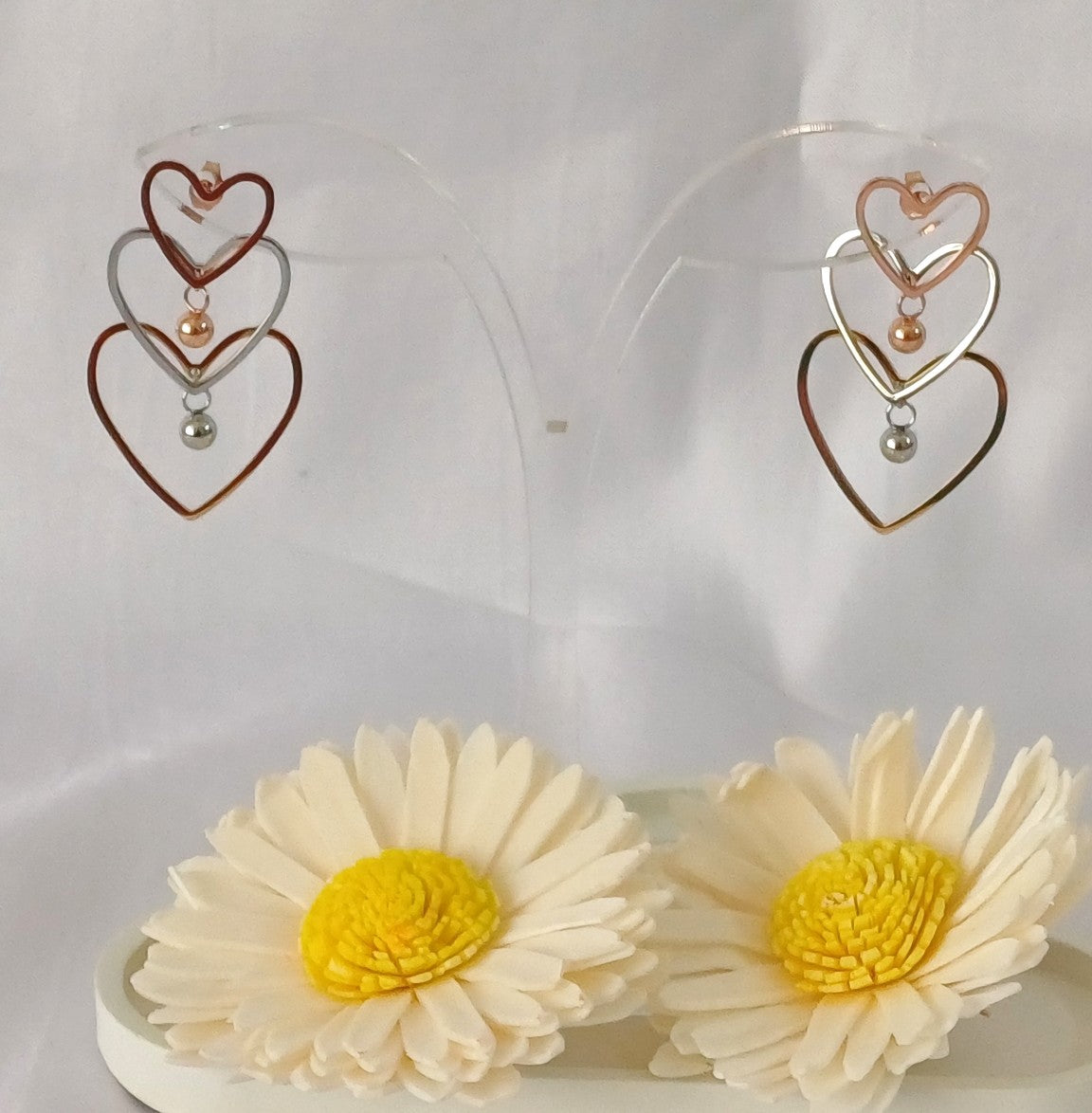 Add a touch of elegance with our Triple Tone Heart Danglers, featuring a stunning blend of rose gold, gold, and silver. Perfect for any occasion, these lightweight earrings add a versatile charm to your outfit!